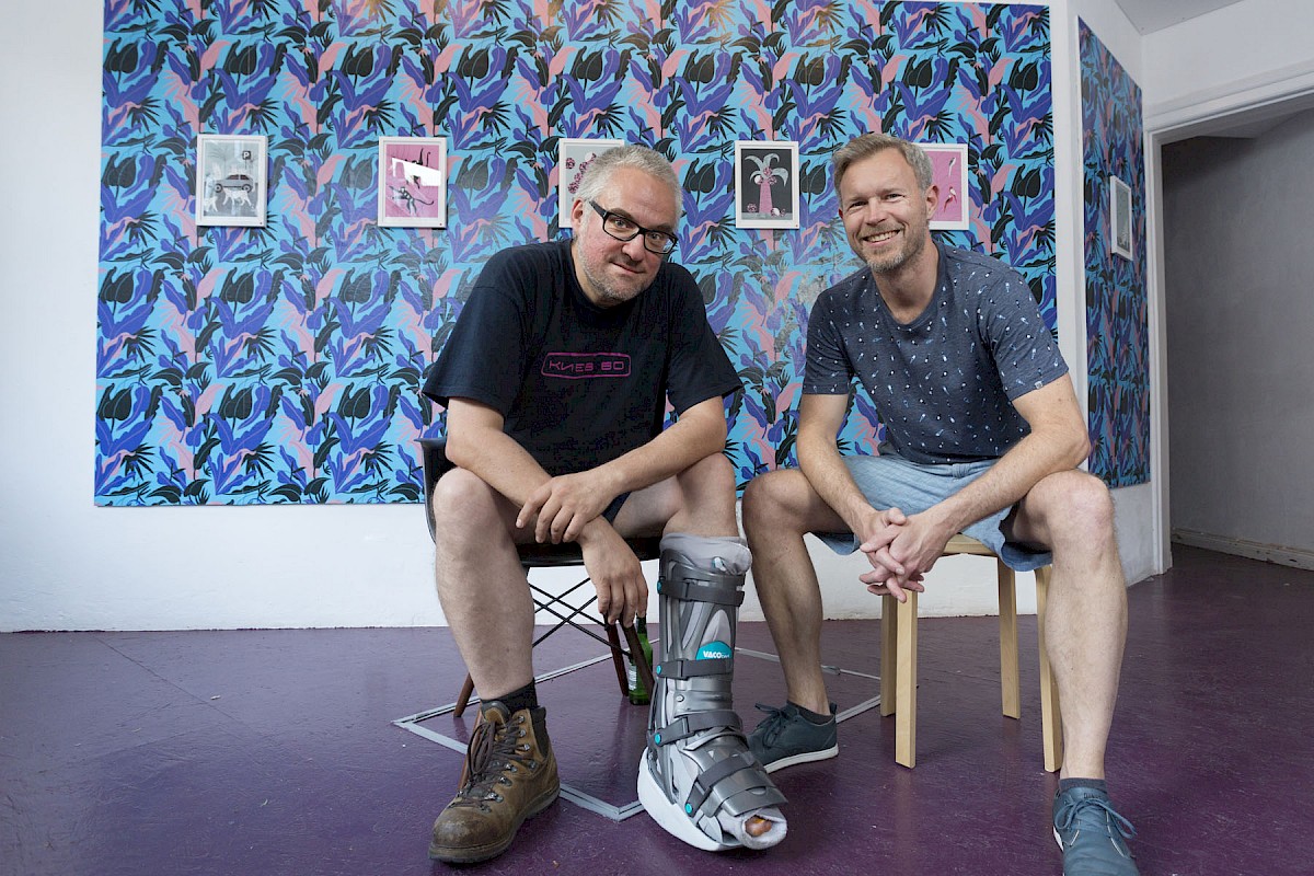 Thomas Holthoff von der Galerie „Tempel 1844“ erzählte eindrucksvoll von dem historischen Ort seiner Galerie - den Ruinen der im Krieg zerstörten jüdischen Synagoge. Unten im Hof ertönte ein lautes Hammergeräusch der Schmiede Lehmann, die ebenfalls auf den Grundmauern der Synagoge steht. Wer wollte, konnte auch dort einen spannenden Einblick in die Arbeit eines Schmieds erhalten. Die weiteren Ausstellungen der Neustädter Galerien wie Feinkunst Krüger, Helium Cowboy, Enfants Artspace oder kulturreich inspirierten die Besucher*innen, regten zum Nachdenken an und brachten einander ins Gespräch.