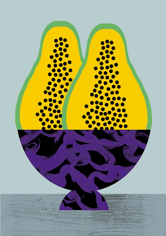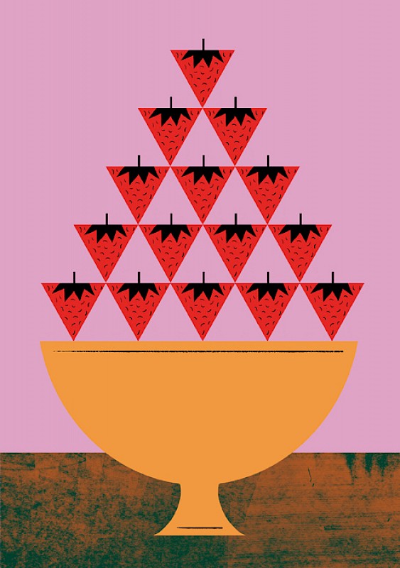In ihrer neuen Serie “Tutti Frutti” lässt die Illustratorin Carolin Löbbert ihrer Experimentierfreude freien Lauf. Die farbenfrohen Kunstdrucke erinnern an Stillleben und sind doch erfrischend anders: Auf geometrische Formen reduzierte Früchte werden in Schalen übereinander gestapelt und fantasievoll platziert.