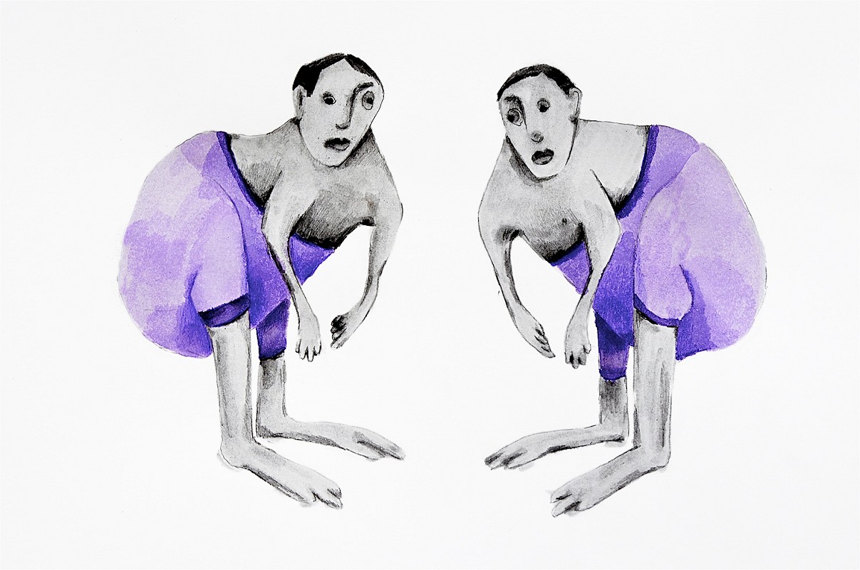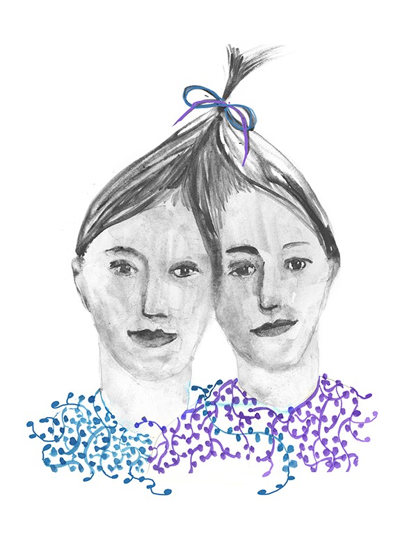 Die für die Ausstellungsreihe der Illustratoreninitiative "Hamburg illustriert" entstandenen Bilder zum Thema Paare zeigen verschiedene Konstellationen. Zusammengewachsen, vereint, verdoppelt treten die Paare in Erscheinung. Dabei stellt sich Corinna Chaumeny die Frage, wie freiwillig oder unfreiwillig eine Person mit der anderen verknüpft ist, wie stark sich Paare ähneln oder beeinflussen.