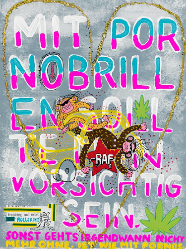 In der Ausstellung „Zauberponys und Penismänner“ entführt Julia Ziegler den Betrachter durch einen Mix aus Malerei und Collagen in eine zügellos bunte Phantasiewelt, in der es jede Menge zauberhafte Sea-Ponys, stoppelige Tiermenschen, heitere Penismänner und Busenfrauen zu sehen gibt.