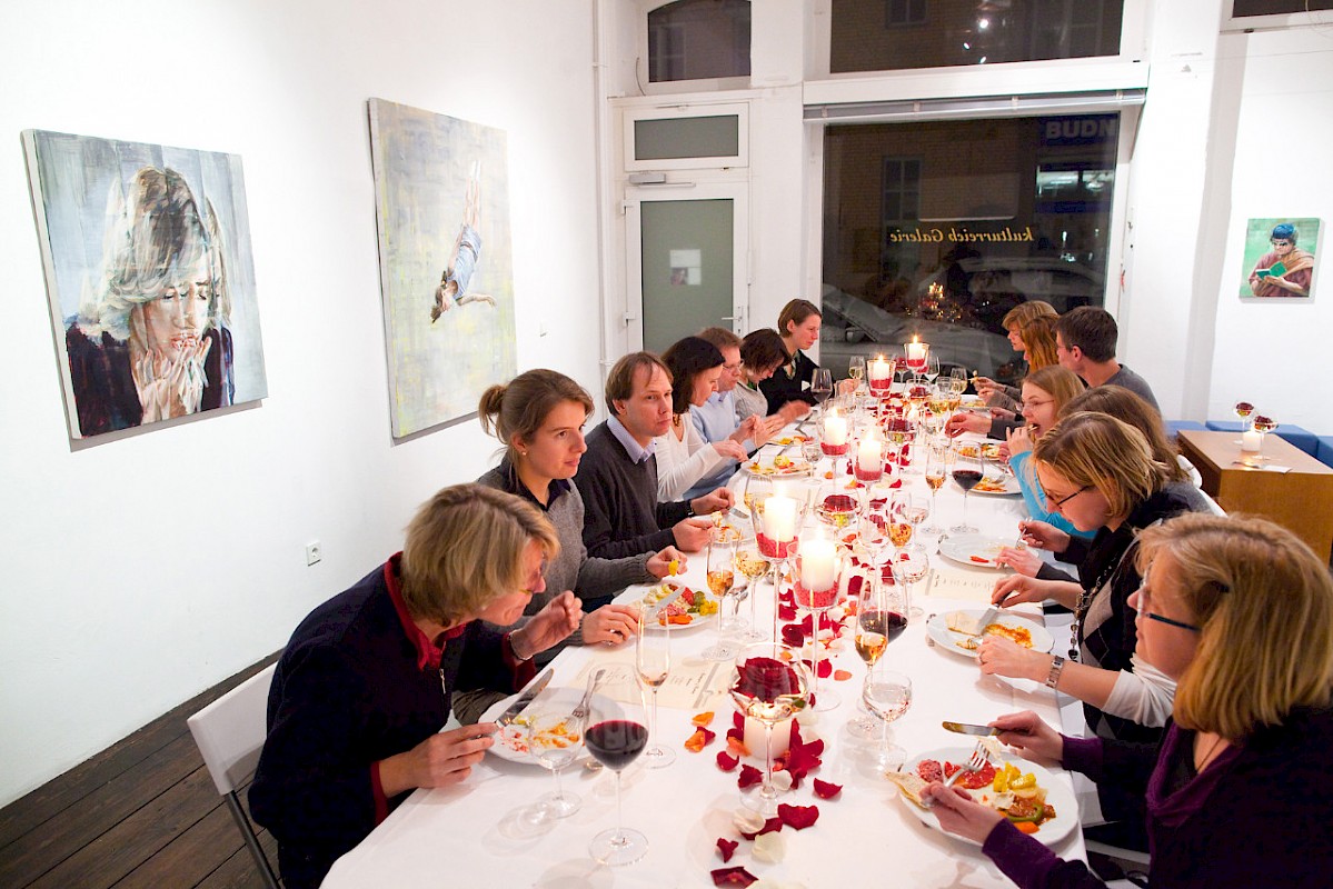 Mehr als ein Geheimtipp ist es, die kreative Umgebung von kulturreich auch für besondere, geschäftliche Konzepte zu nutzen. Hier wurde mit einer Ausstellung ein Pitch einer Kreativagentur gewonnen, Teams kleiner und großer Unternehmen haben sich beim Kochkurs neu gefunden oder das Gegenteil einer klassischen Weihnachtsfeier erlebt. Je nach Anlass kann die Galerie nach ganz eigenen Vorstellungen umgestaltet werden, von einem Kreativ-Labor, über einen Pop up-Laden bis hin zu einer Parfum-Degustation ist alles denkbar, solange das Konzept überzeugt. Wir freuen uns immer wieder auf neue Ideen und Denkanstöße, werfen aber genauso gern selbst den Motor an! Hier sehen Sie ein paar Beispiele.