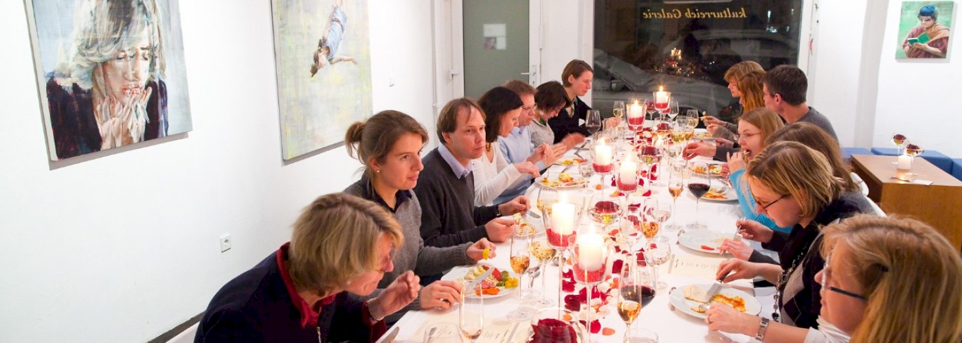 Ob ein geschäftlicher oder privater Anlass, Gründe gibt es viele in einem besonderen Rahmen und Location wie bei kulturreich zu feiern. In inspirierender Atmosphäre können Sie zu Ihrem eigenen Fest in die kulturreich Galerie und ins angeschlossene Café einladen – und auf Wunsch die Event-Ausrichtung in unsere Hände geben. Laden Sie zum Beispiel Ihre Kunden und Freunde zu einem festlichen Dinner, Empfang oder einer Weinprobe inmitten von Kunst ein, oder lassen Sie sich und die Kunst bei einer Geburtstagsfeier hoch leben und feiern! Hier sehen Sie ein paar Impressionen.