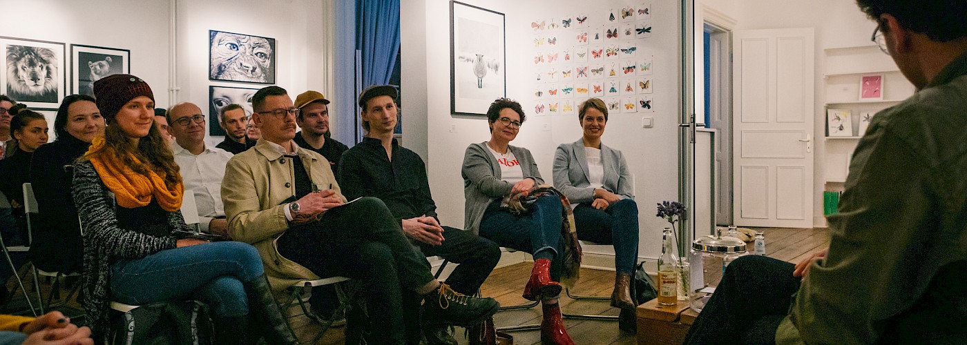 Unterschiedlichste Formate mit verschiedenen Gästen vereinen unsere Leidenschaft für Kreatives - mit Kunst, Genuss und Freude Bewegung in die Gesellschaft zu bringen. Bei unseren Salon zur Achtsamkeit im Umgang mit Tieren im Rahmen der „Wünsch dir ‚was“-Ausstellung (bis 18.01.20) gingen wir mit Jakob Schnetz, Fotograf, Hannah Emde, Artenschutz-Tierärztin für den gemeinnützigen Nepada Wildlife e.V., und Nike Hornbostel, Transformationstrainerin für Nachhaltigkeit, unserem Verhalten auf den Grund.